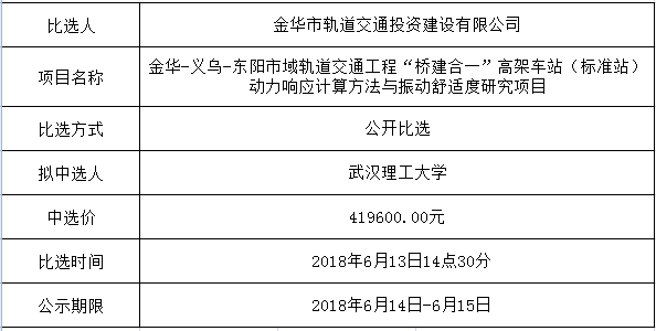金華市金義東軌道交通有限公司運營2026-2027年度活動實施服務(wù)機構(gòu)框架協(xié)議項目中標候選人公示