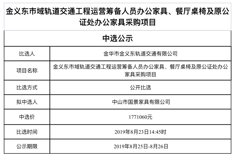 金華市金義東軌道交通有限公司運營2026-2027年度活動實施服務(wù)機(jī)構(gòu)框架協(xié)議項目中標(biāo)候選人公示