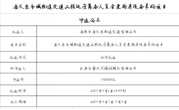 中選公示(廚房設(shè)備)