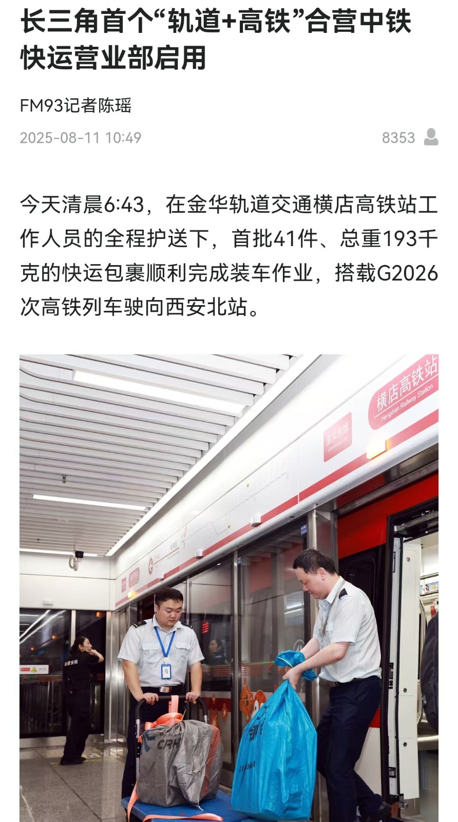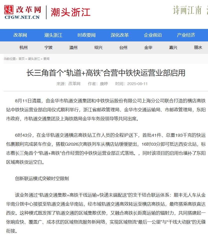 8月11日,長三角首個“軌道+高鐵”合營中鐵快運營業(yè)部啟用。該營業(yè)部將串聯(lián)金義東市域軌道交通全線站點形成收攬網(wǎng)絡(luò),在全線31座車站均可辦理業(yè)務(wù),通過軌道交通集中收攬分撥后接入全國高鐵物流網(wǎng)。