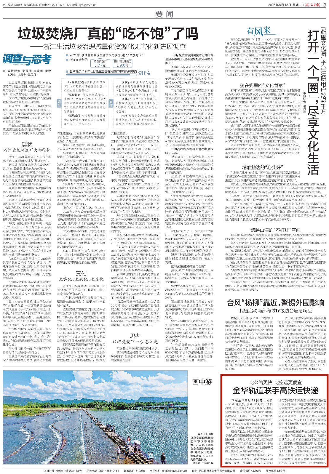 人民網(wǎng)、央廣網(wǎng)、改革網(wǎng)、《工人日報》客戶端、中央廣電總臺國際在線、《浙江日報》、浙江衛(wèi)視《聯(lián)播快訊》、潮新聞客戶端、浙江交通之聲、交通旅游導(dǎo)報、金華日報等國家級、省市級主流媒體相繼報道相關(guān)內(nèi)容。
