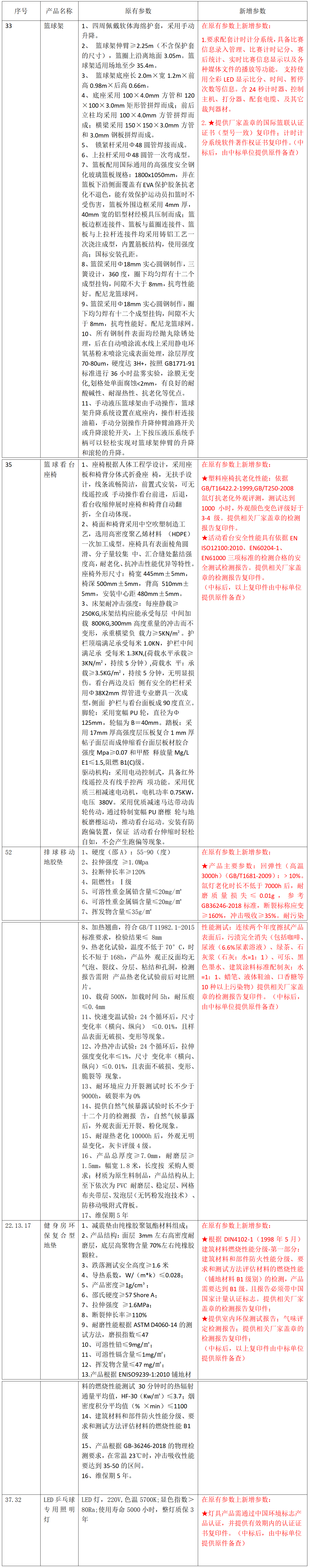 招標(biāo)文件第三章招標(biāo)項(xiàng)目需求附件《健身器材清單》部分技術(shù)參數(shù)修改如下,其余未修改項(xiàng)按原招標(biāo)文件執(zhí)行。