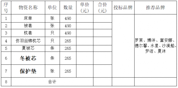 致:各參選人 比選人現(xiàn)將參選人提出的問題及招標(biāo)文件需要澄清、修改、補遺、答疑的內(nèi)容,統(tǒng)一答復(fù)你們,請認真研究。本次澄清、修改、補遺、答疑若與招標(biāo)文件不一致之處,以本次補充文件為準(zhǔn)。一、問:報價明細表中有推薦品牌,其他品牌是否可以參與? 推薦品牌均為家紡產(chǎn)品的品牌,而貴公司所需產(chǎn)品均為酒店布草產(chǎn)品,與家紡產(chǎn)品存在差異,且一般酒店布草的同質(zhì)量產(chǎn)品在技術(shù)標(biāo)準(zhǔn)上均優(yōu)于甲方產(chǎn)品。建議貴公司可以放開參與品牌的范圍,允許類似我司這樣的專業(yè)酒店布草生產(chǎn)廠家參加。答:甲方推薦品牌的,供貨產(chǎn)品品牌須在技術(shù)需求中推薦品牌范圍內(nèi)或相當(dāng)于(或優(yōu)于)推薦品牌。